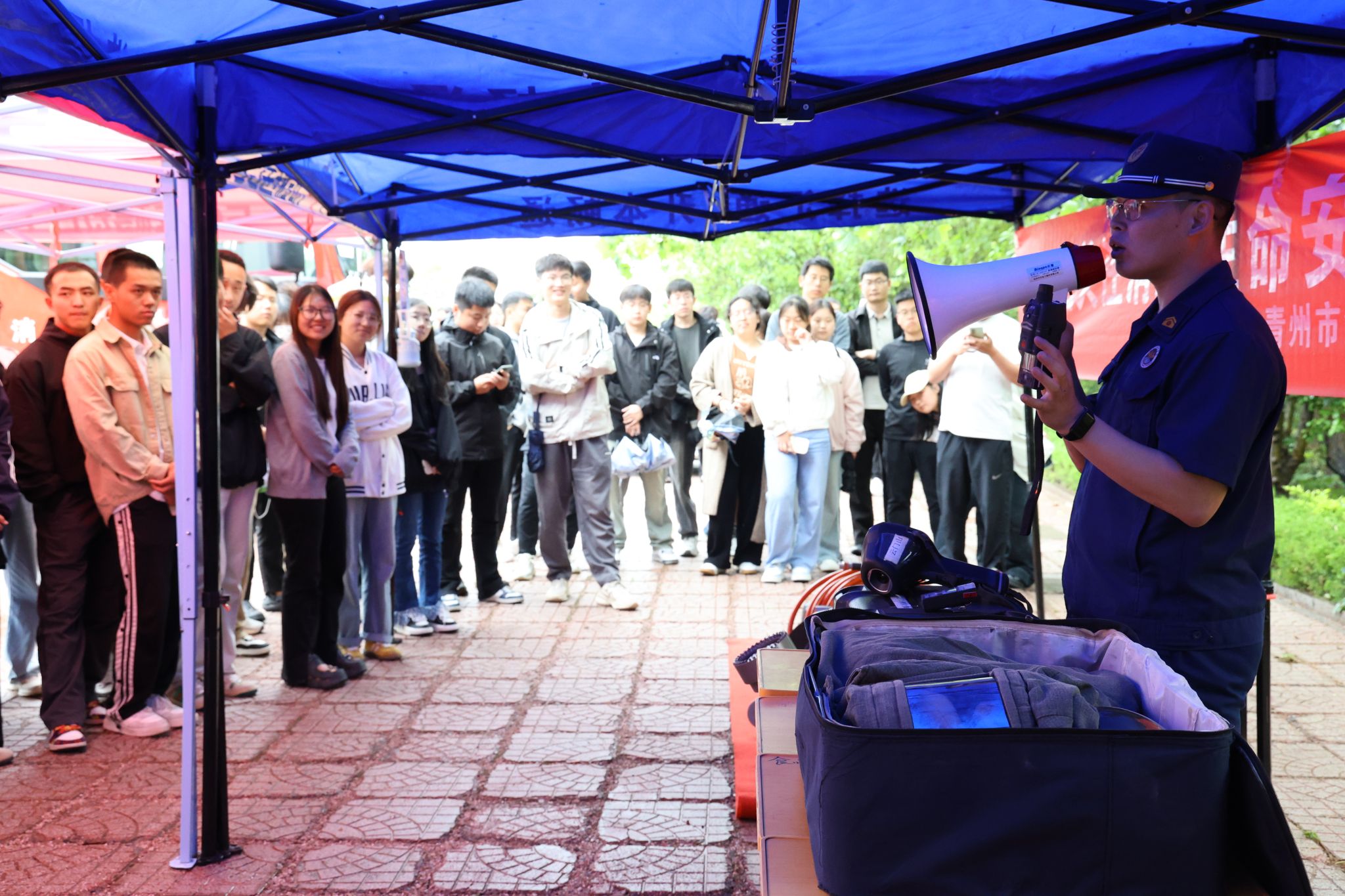 “干粉灭火器的使用步骤,你们知道吗?”消防救援人员和志愿者现场开展有奖问答、发放彩页宣传活动,在互动过程中将校园火灾危害性、宿舍预防火灾措施和疏散逃生自救技巧等知识进行了广泛科普,现场氛围热烈,吸引众多学生驻足参与。